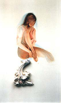 »Tänzerin« (Aquarell auf Seide, Stuck-Ornament, 70cm x 140cm)