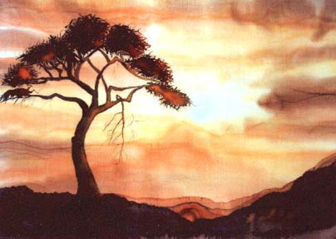 »Steppenlandschaft« (Aquarell auf Crepe de chine Seide, 50cm x 70cm)